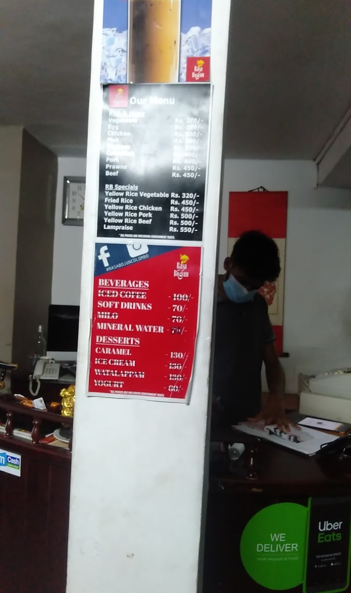 From a reviewer’s perspective, the lunch offerings at Rasa Bojun make for a straightforward yet satisfying dive into classic Sri Lankan fare. The menu showcases hearty rice and curry options with familiar local favourites like Chicken - Rice & Curry and Fried Fish - Rice & Curry, alongside protein‑rich choices such as Beef - Rice & Curry and the humble but beloved Egg - Rice & Curry; there’s also a lighter Veg - Rice & Curry for plant‑based diners, all reasonably priced within the restaurant’s typical range of roughly Rs 1,000-1,500 per meal. These staple dishes reflect the no‑frills, comforting essence of traditional home‑style cuisine that the restaurant aims to deliver, making it a reliable spot for anyone looking to sample everyday Sri Lankan lunch classics without pretense.